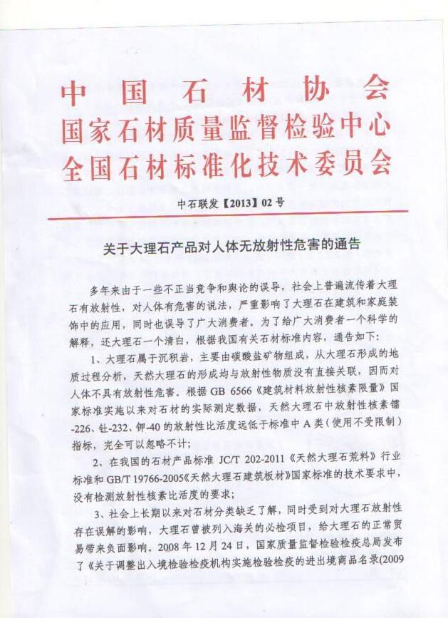 - 央視等多家權威機構發布大理石對人體無害的通告